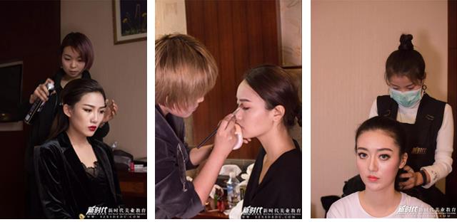 新时代师生们认真的为参赛者设计妆容发型,优秀的化妆技术和敬业的工作态度受到主办方的高度认可和赞赏。新时代化妆学校同时为学员们提供高质量的实践活动,在实习中提升技能,开阔眼界。